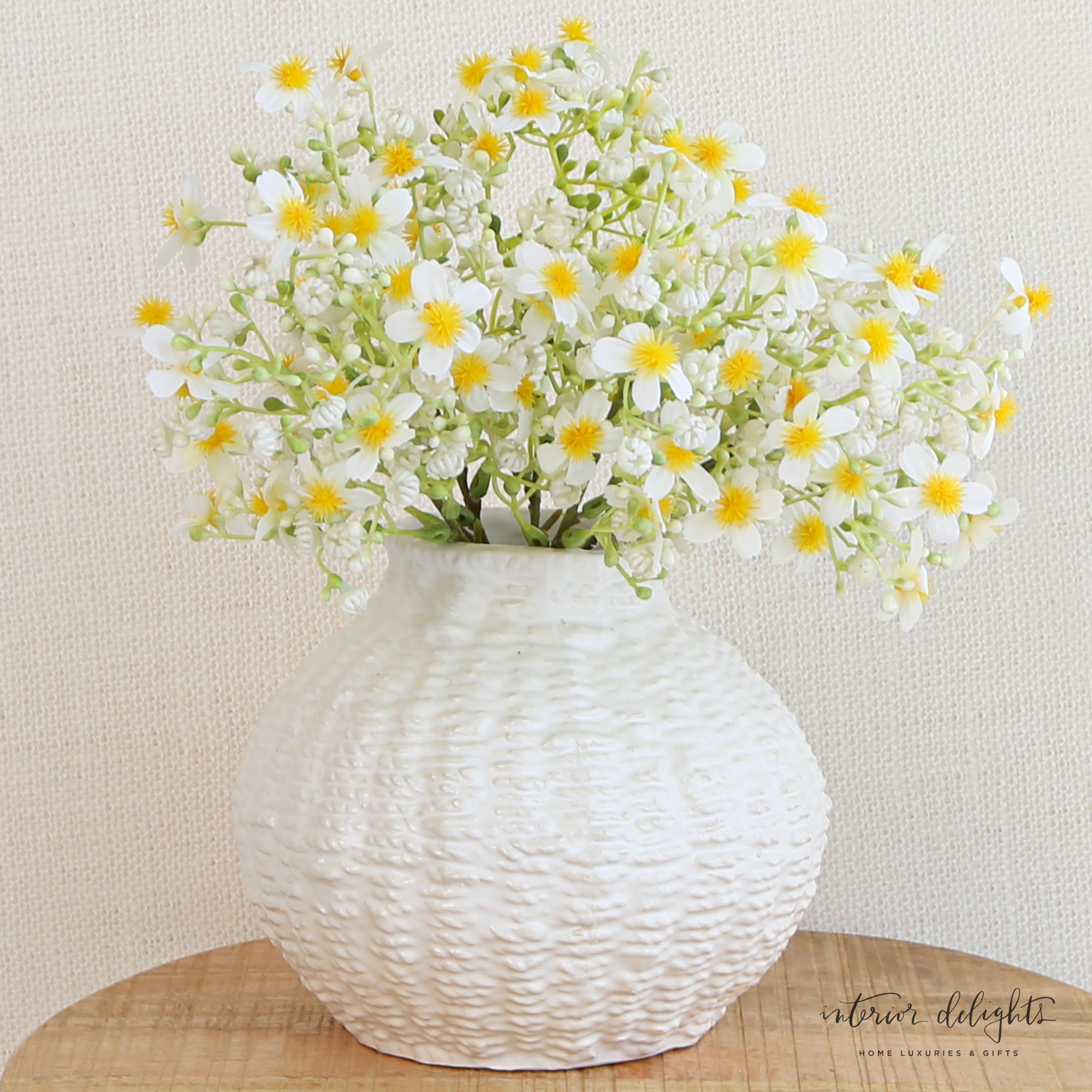 These woven ceramic round vases bring the charm of white wicker with the strength and texture of ceramic, making them a lovely and lasting accent for your home. Their timeless, airy design complements a range of styles from cottage to coastal.