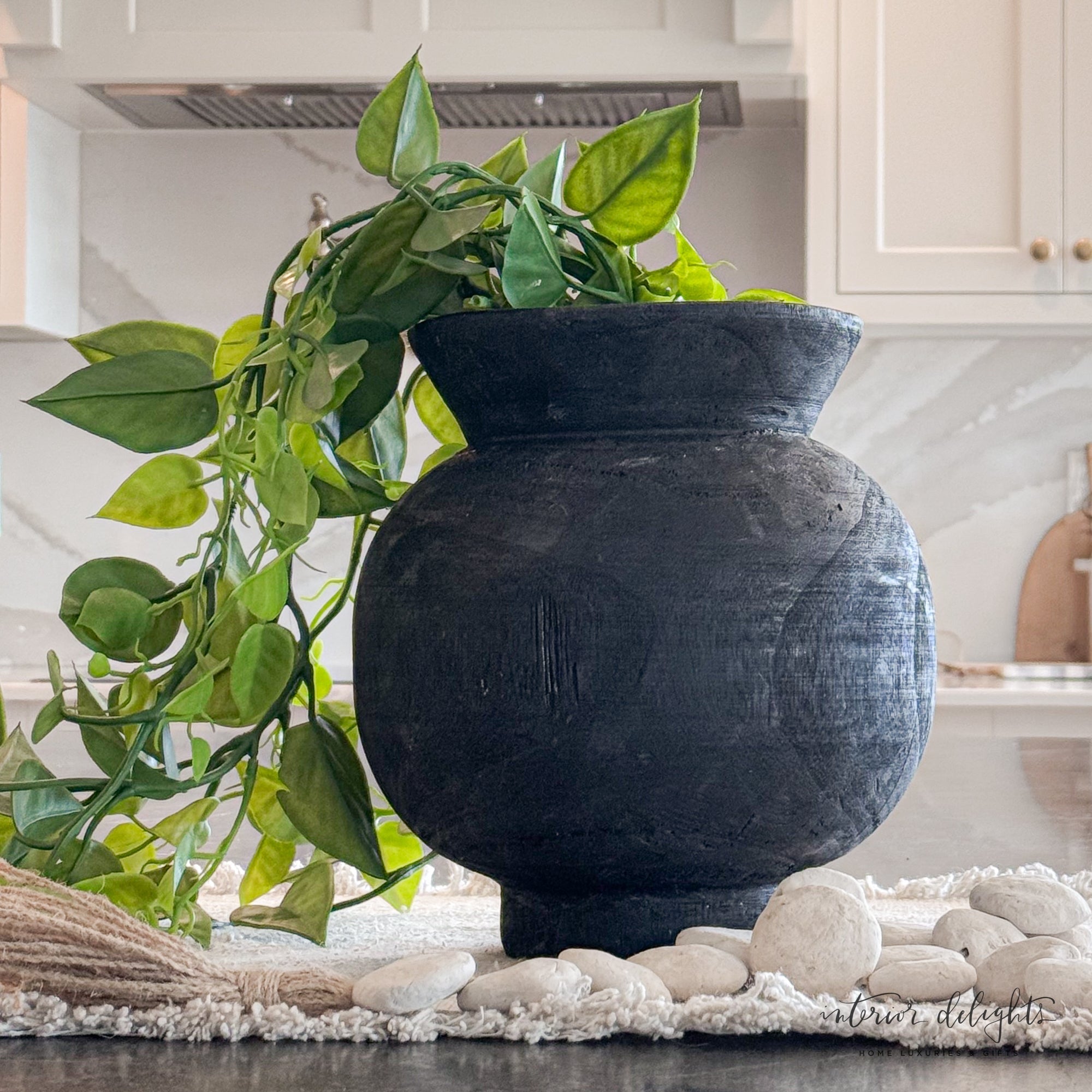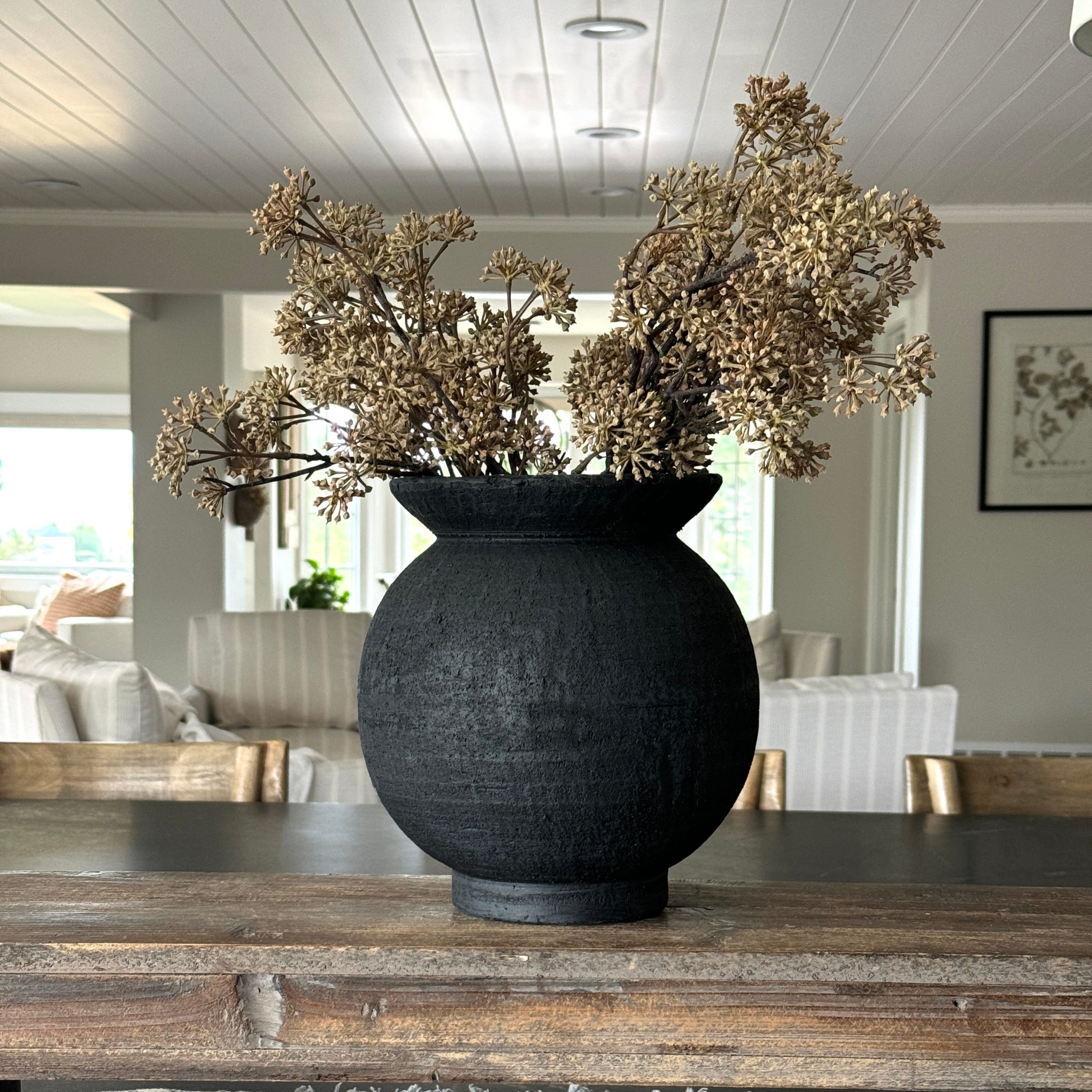 Indulge in the luxury of our Black Paul Vase, a timeless accent piece with modern sophistication. Crafted from high-quality ceramic, its rich, textured finish and rounded shape create a striking statement in any room. Perfect for displaying greenery, florals, or as a standalone decor piece.